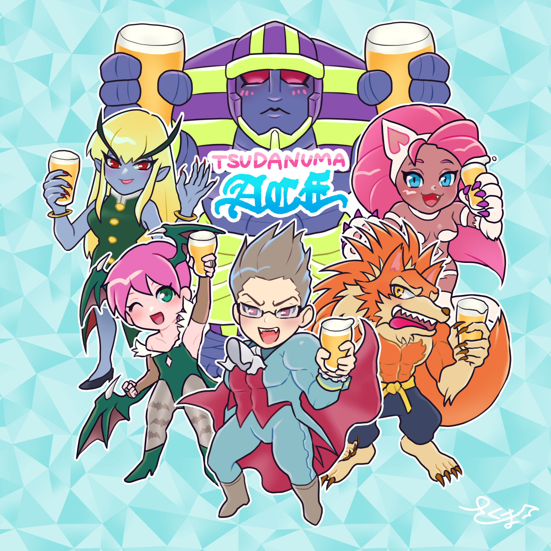 おジェダvsデミデミ杯 inスペースシャトル塩釜口店 告知イラスト(蛙水さんとの合作)